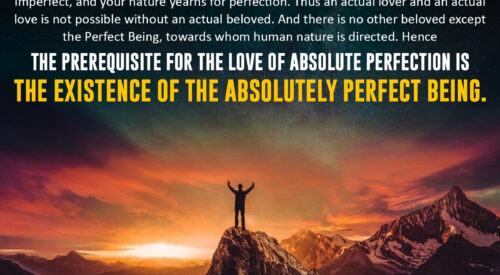 “This actual love of yours seeks the Actual Beloved. It cannot be an imaginary beloved of your fancy, since every imaginary thing is imperfect, and your nature yearns for perfection. Thus an actual lover and an actual love is not possible without an actual beloved. And there is no other beloved except the Perfect Being,…