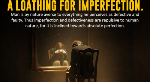 “One of the characteristics of the nature upon which God has fashioned mankind is a loathing for imperfection. Man is by nature averse to everything he perceives as defective and faulty. Thus imperfection and defectiveness are repulsive to human nature, for it is inclined towards absolute perfection.” SOURCE: FORTY HADITH | IMAM KHOMEINI (R)