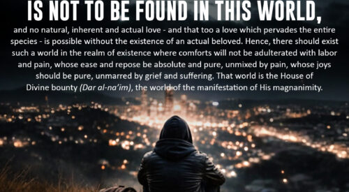 “The ultimate human goal is not to be found in this world, and no natural, inherent and actual love – and that too a love which pervades the entire species – is possible without the existence of an actual beloved. Hence, there should exist such a world in the realm of existence where comforts will…